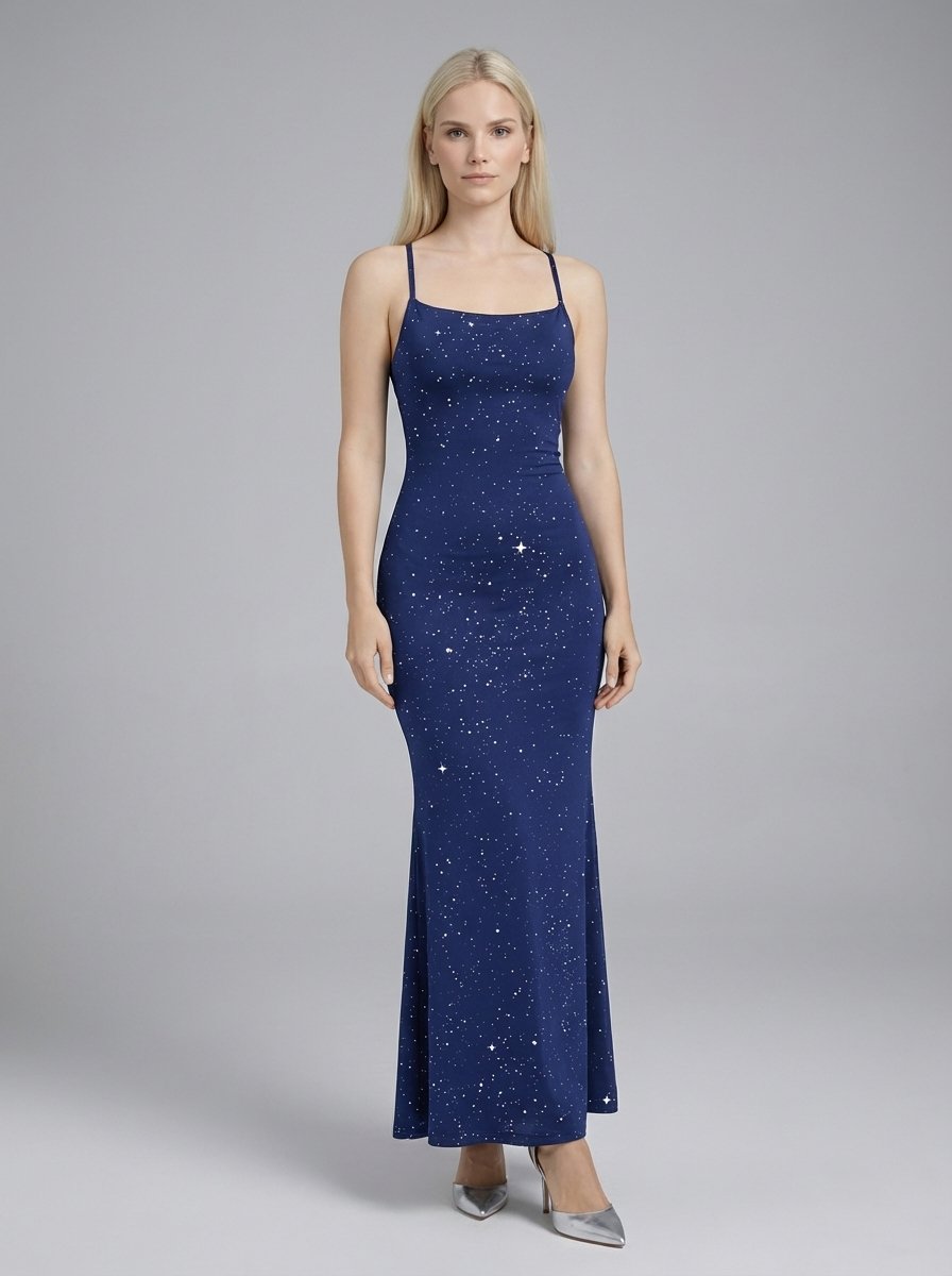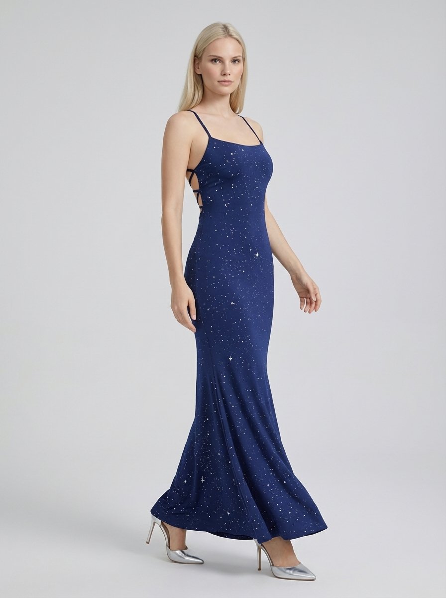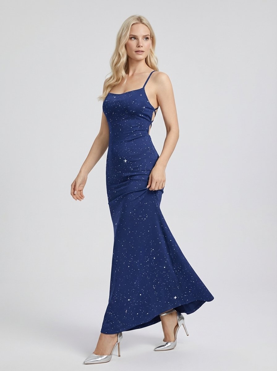 Blue Spaghetti Strap Mermaid Dress – Fitted StyleBlue Spaghetti Strap Mermaid Dress – Fitted Style